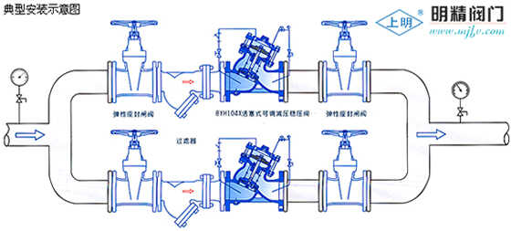 BYH104X活塞式可調(diào)式減壓穩(wěn)壓閥是安裝于高層建筑給排水系統(tǒng)管道上,將進口壓力減至某一需要的出口壓力的特種閥門。該閥門依靠本身能量使出口壓力保持穩(wěn)定在設(shè)定值,即出口壓力不因進口壓力及流量的變化而變化.并且閥門控制系統(tǒng)的進口處裝有一個自清潔濾網(wǎng),利用流體特性,使比重較大、直徑較大的懸浮顆粒不會進入控制系統(tǒng),確保系統(tǒng)循環(huán)暢通無阻,使閥門能可靠地運行。系統(tǒng)動作平穩(wěn)、強度高、使用壽命長活塞式適用于大于450口徑的閥門。