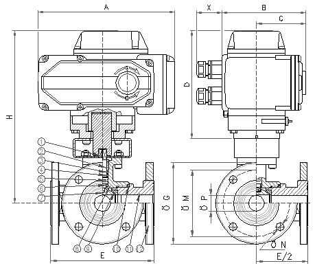 主要材質:閥體 (1)WCB (2)304 (3)316 (4)316L
